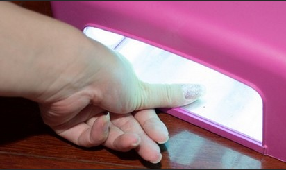 第三步:然后再把每个指甲油刷在指甲上,打好底,如图,照灯60秒。