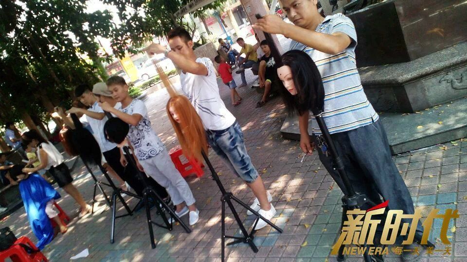 【新时代新时代美发班周末实操动态】:今天周六了,昨天看天气预报说今天有雨,幸好早上天气晴朗,早上,新时代新时代美发班的同学们早早的出发前往三和实操点进行实操练习。